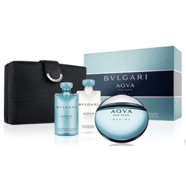 ESTUCHE BVLGARI AQVA MARINE HOMBRE 3PZS 100ML EDT + 15ML EDT + MARICONERA