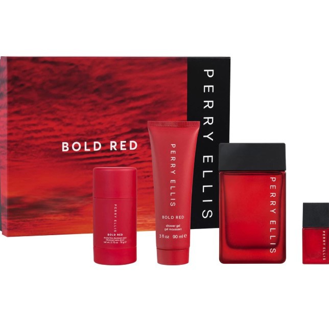 ESTUCHE PERRY ELLIS PERRY BOLD RED by Perry Ellis Hombre 4pzs 100ml edt + 7.5ml edt + gel de baño + desodorante. Perry Ellis Bold Red de Perry Ellis se lanzó en 2020. Las Notas de Salida son manzana roja y Cal del dedo; las Notas de Corazón son hojas verdes, flor de jengibre y pimienta negra; las Notas de Fondo son almizcle, caoba y haba tonka.